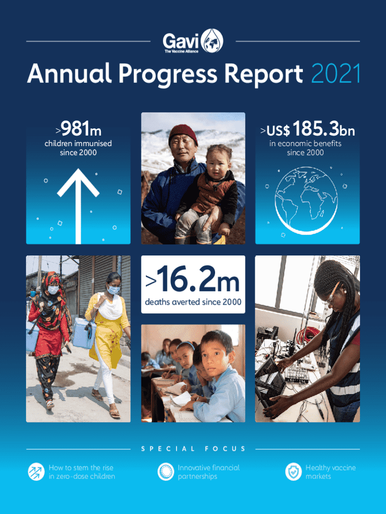The report details Gavi\'s achievements and challenges in immunising children against various diseases, particularly highlighting efforts in response to the COVID-19 pandemic, the increase in zero-dose