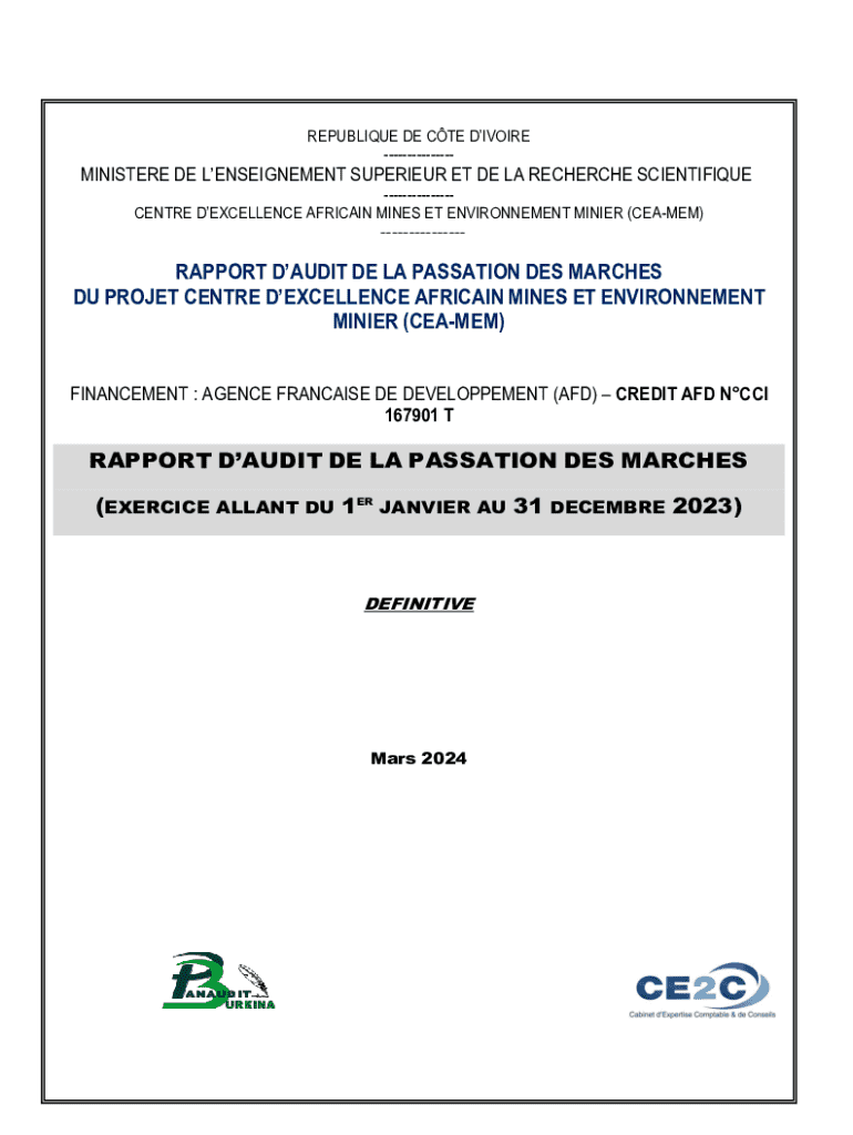 Obtenir le gratuit n043-c rapport d'audit des marches passes premier ...