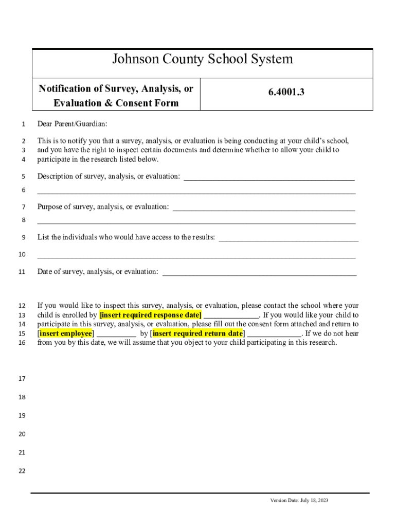 Get the free Notification of Survey, Analysis, or Evaluation & Consent Form