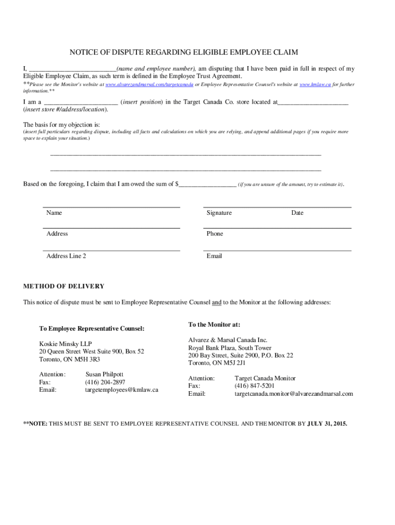 Get the free Notice of Dispute Regarding Eligible Employee Claim