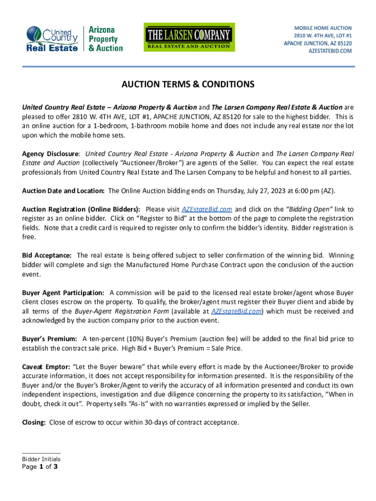 Moreover, having clear auction terms reinforces trust in the transaction process. For buyers, knowing their rights concerning payment, item returns, and disputes can save them from significant financial losses. Sellers benefit from established guidelines that set expectations for both their conduct and that of the bidders.