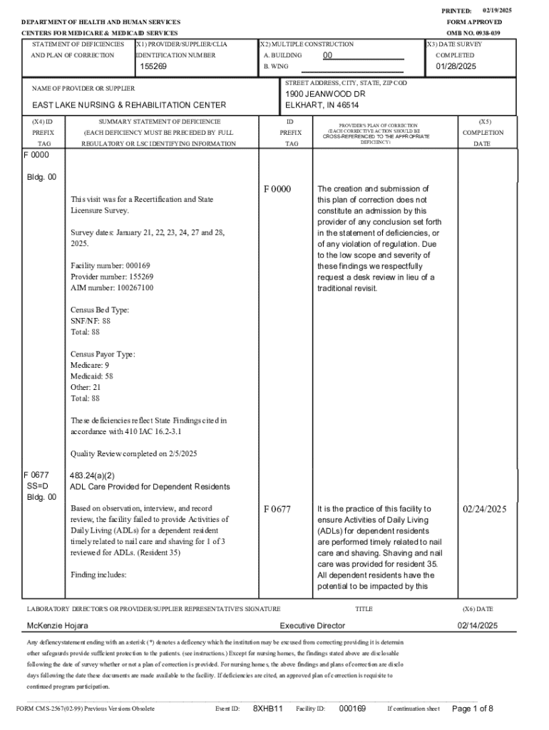 Its importance in healthcare compliance cannot be overstated. The CMS-2567 Form not only provides a clear outline of deficiencies but also serves as a roadmap for facilities to address these issues effectively. The form's structure encourages healthcare providers to put actionable plans in place, ultimately aiming to enhance patient safety and care quality.