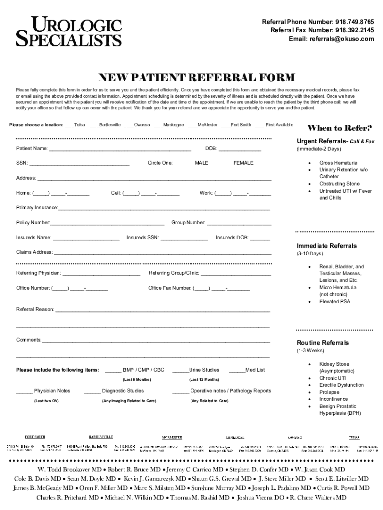 Typically, the primary care physician or referring provider is required to file a new patient referral form to ensure that the patient receives the necessary care from a specialist.