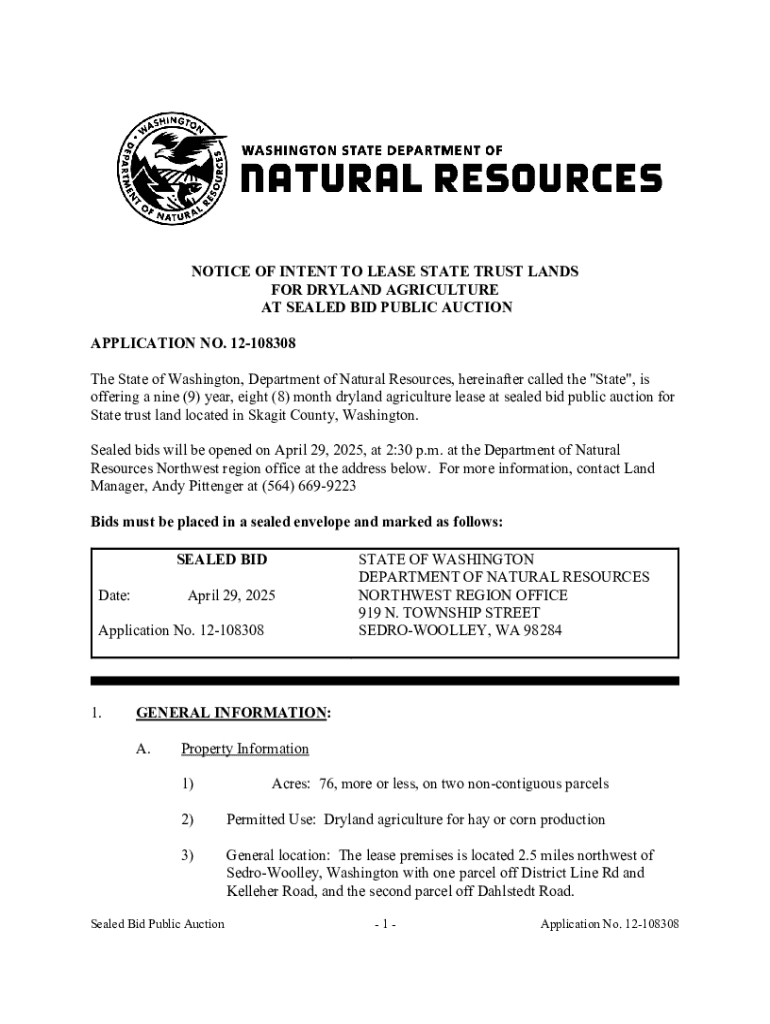 Get the free Notice of Intent to Lease State Trust Lands for Dryland Agriculture at Sealed Bid Pu...