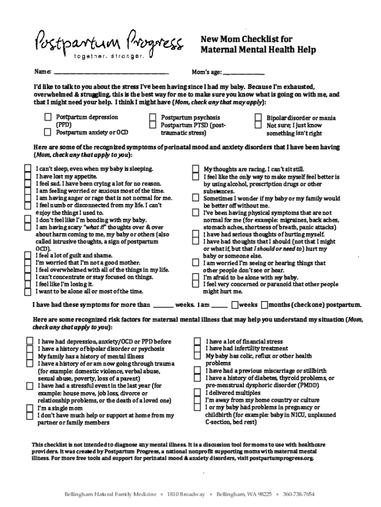 Get the free New Mom Checklist for Maternal Mental Health Help