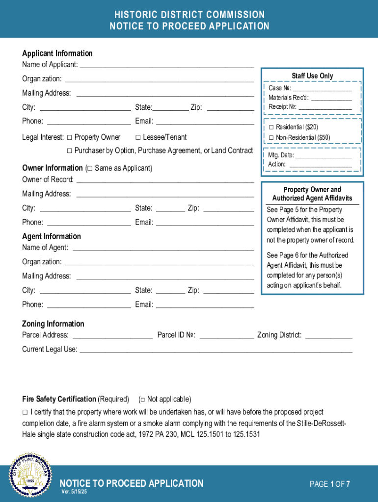 Get the free Notice to Proceed Application