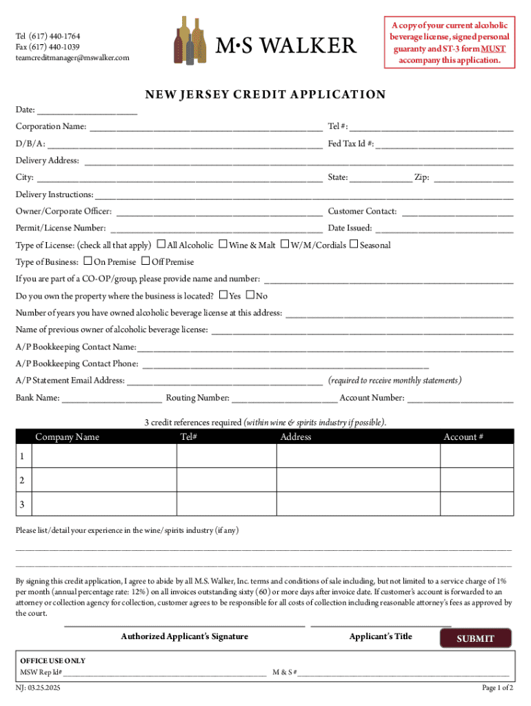 Get the free New Jersey Credit Application