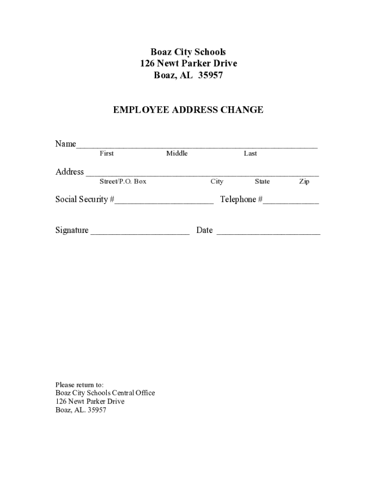 This form is used by employees of Boaz City Schools to notify the administration of any changes to their address.