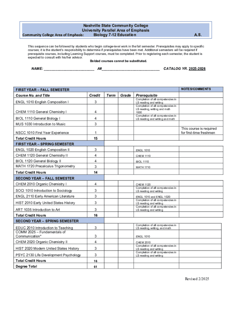 Get the free Nashville State Community College Biology Education Curriculum