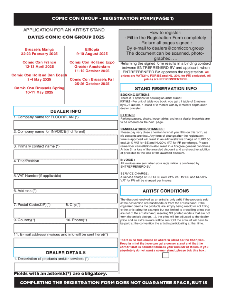 The comic con group form serves as the cornerstone for registering your team effectively. It includes features that streamline the process, allowing groups to share vital information quickly and efficiently.