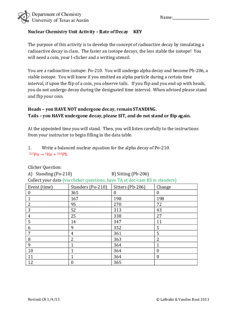 Get the free Nuclear Chemistry Unit Activity – Rate of Decay - ctp cm utexas