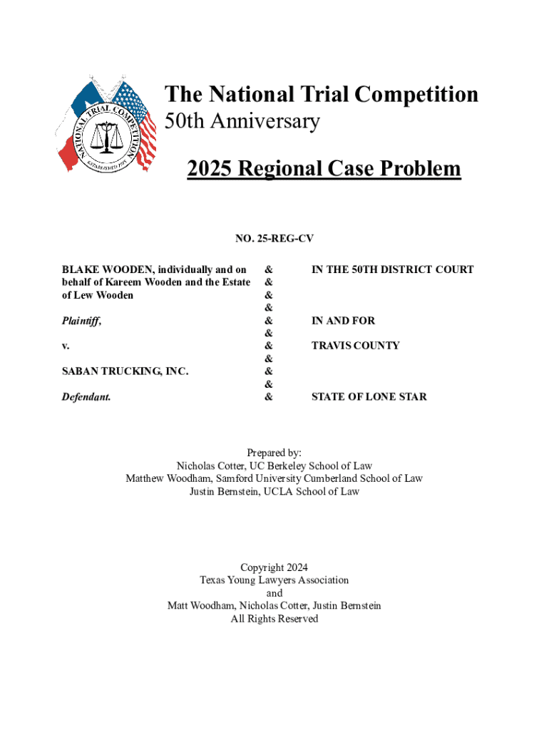 Get the free National Trial Competition 2025 Regional Case Problem