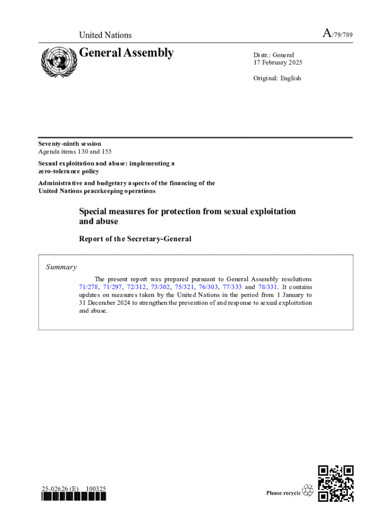 This report outlines the measures taken by the United Nations from January to December 2024 to prevent and respond to sexual exploitation and abuse, as well as updates on the progress and challenges