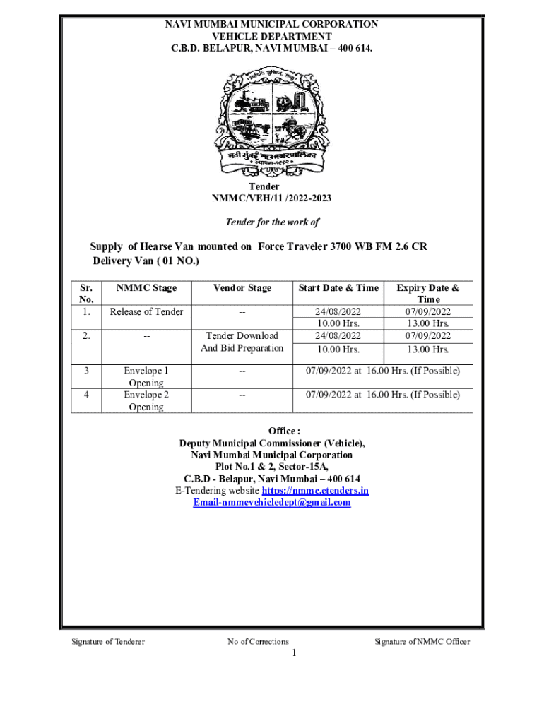 Get the free Navi Mumbai Municipal Corporation Tender Document