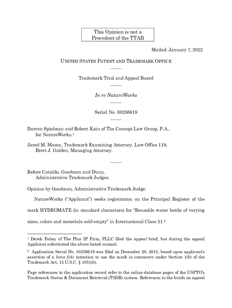 Get the free Nationwide Trademark Trial and Appeal Board Attorney