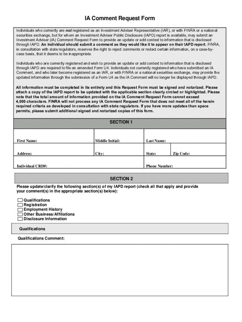 Comprehensive Guide to the IA Comment Request Form