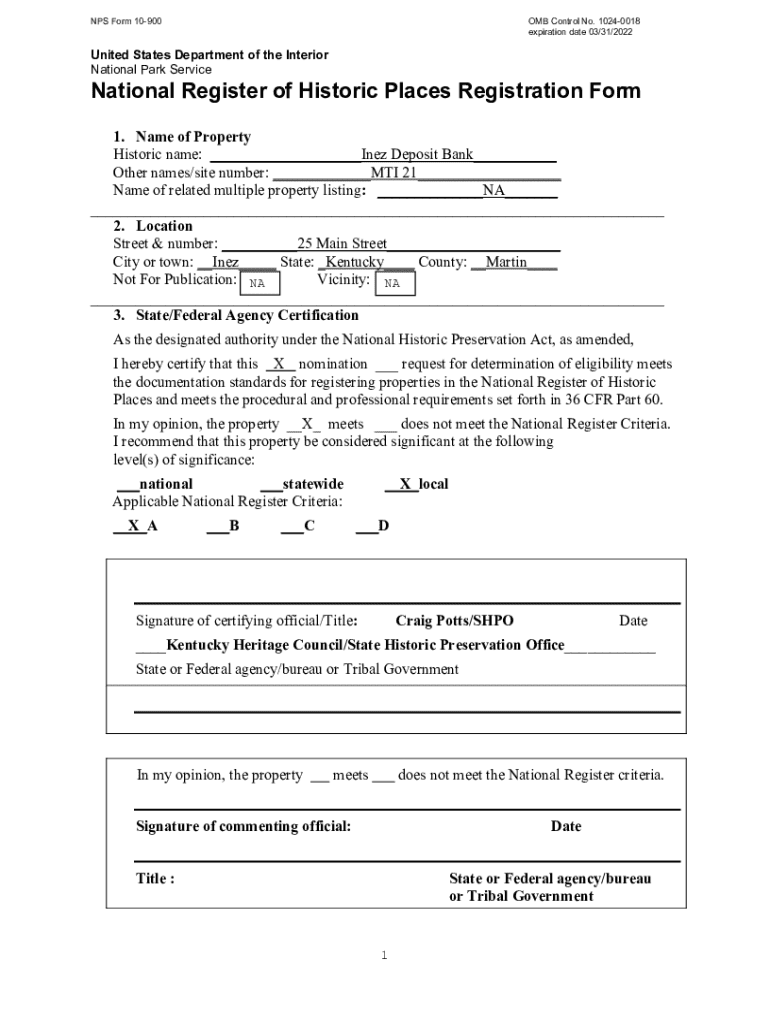 The NPS Form 10-900, also known as the National Register of Historic Places registration form, is a critical document for the preservation of cultural and historical properties in the United States. This form is the primary means through which owners and advocates seek to have properties listed on the National Register of Historic Places, an official list maintained by the National Park Service.