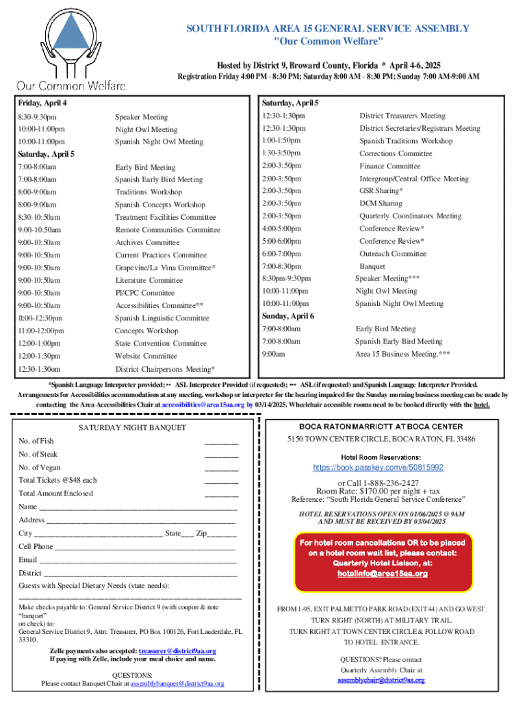 Get the free area 15 sur de la florida asamblea de servicios genreales