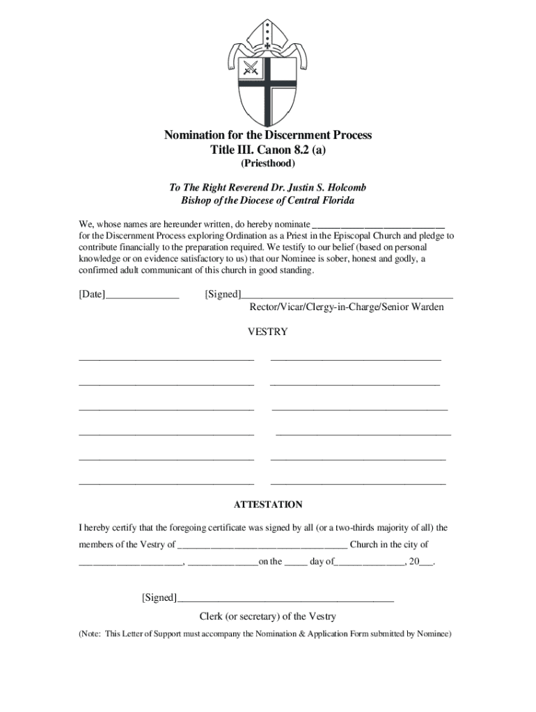 Get the free Nomination for the Discernment Process
