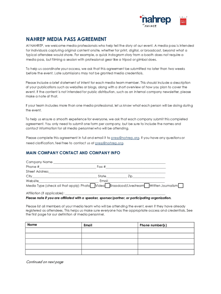 To better understand the context and importance of the NAHREP Media Pass Agreement Form, media professionals can explore various related topics. For instance, attending NAHREP events provides insights into the latest trends in the real estate market, along with networking opportunities that can significantly enhance career prospects.