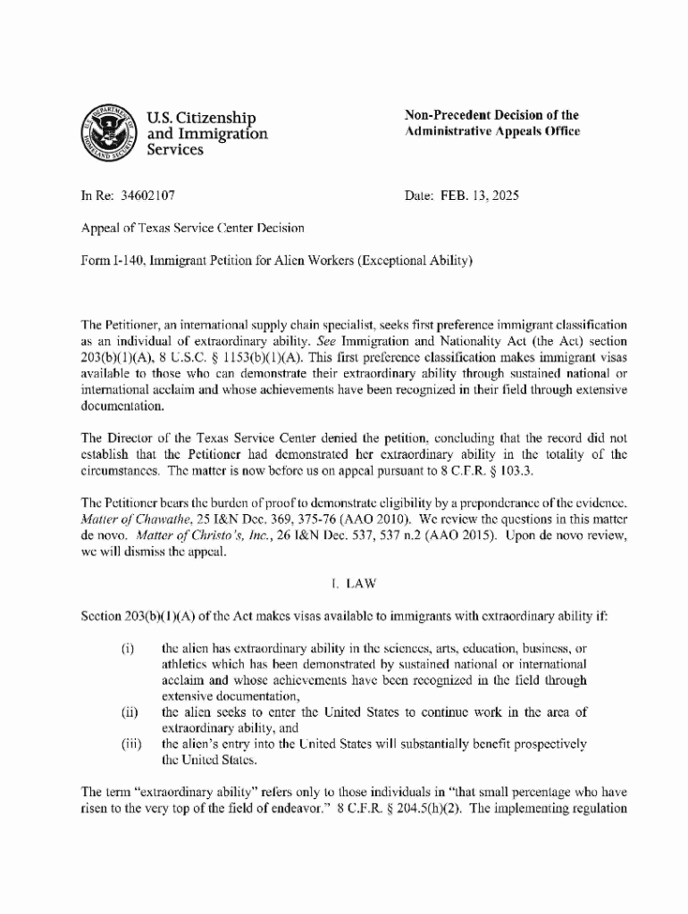 Get the free Non-precedent Decision of the Administrative Appeals Office