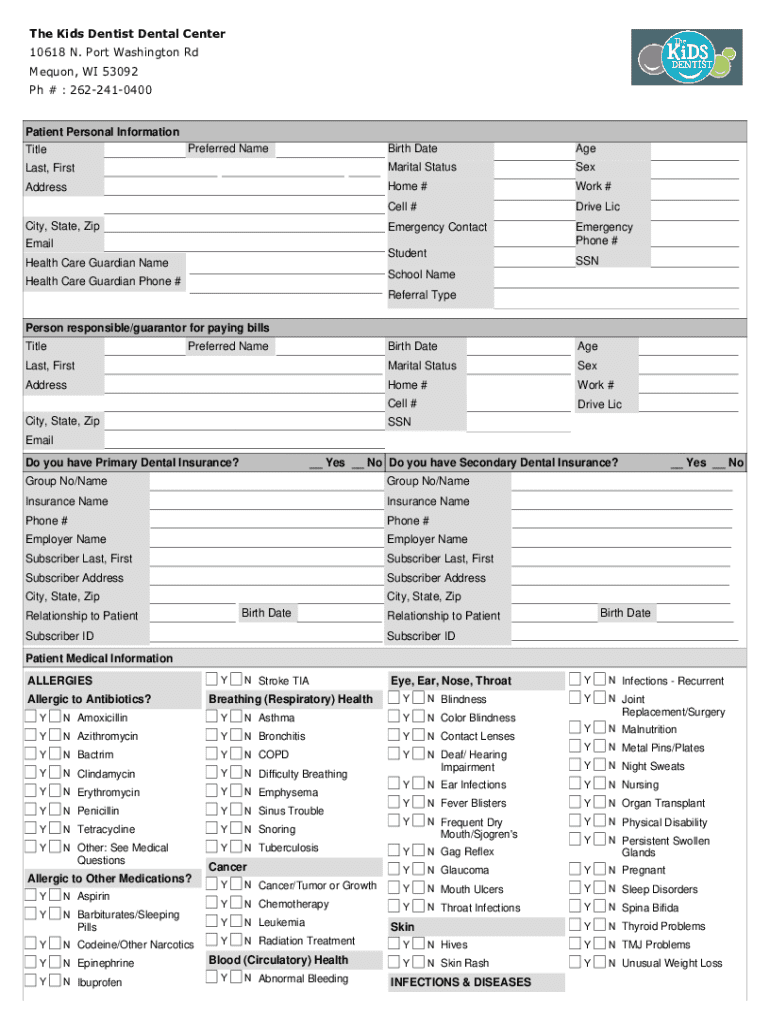 Insurance details are also a critical part of the form, encompassing provider information and policy numbers to facilitate billing and coverage verifications. Lastly, emergency contacts are included for circumstances requiring immediate assistance, ensuring healthcare teams can swiftly reach family or friends if needed. Each section serves a distinct purpose, contributing to the holistic view of a patient's health.
