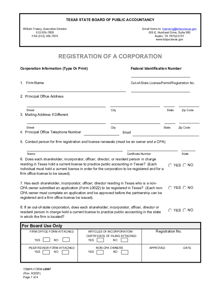 TSBPA Form L0007 is an essential component for any individual or firm wishing to operate legally within the Texas accounting landscape. By following the outlined guidelines, users can ensure a streamlined process in obtaining their licensing.