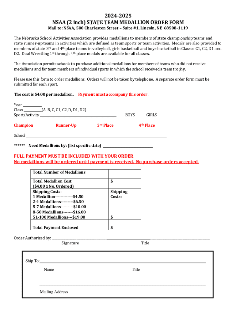 Comprehensive Guide to the NSAA State Team Medallion Form