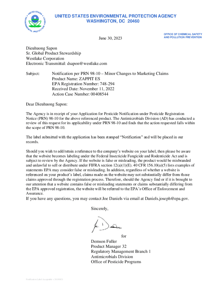 Get the free Notification Per Prn 98-10 – Minor Changes to Marketing Claims