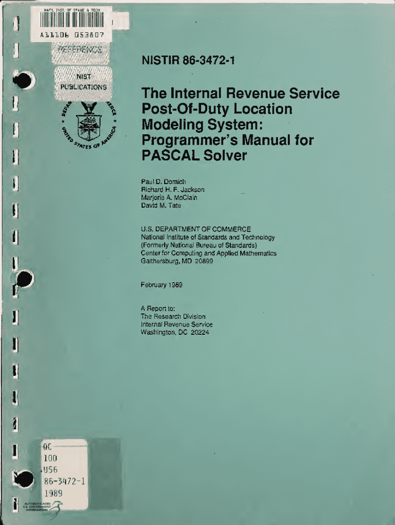 This report is a programmer\'s manual for a microcomputer system designed at the National Institute of Standards and Technology for selecting optimal locations of IRS Posts-of-Duty (PODs). The mathematical