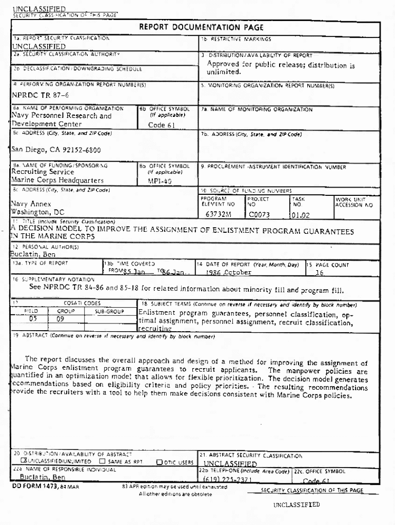 Understanding the NPRDC TR 87-6 form is fundamental for military personnel, government officials, and contractors who rely on this documentation for project proposals, reports, or other official capacities. With stringent documentation standards in these fields, familiarity with this form can enhance operational efficiency.