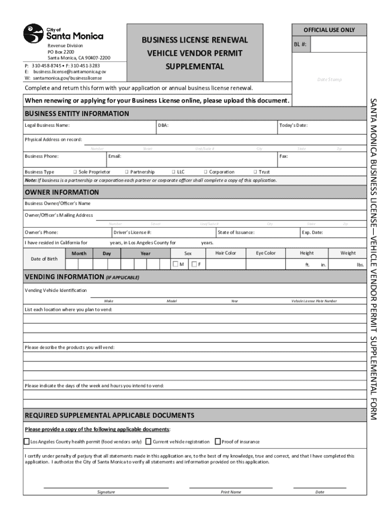 Get the free Business License Renewal Vehicle Vendor Permit Supplemental