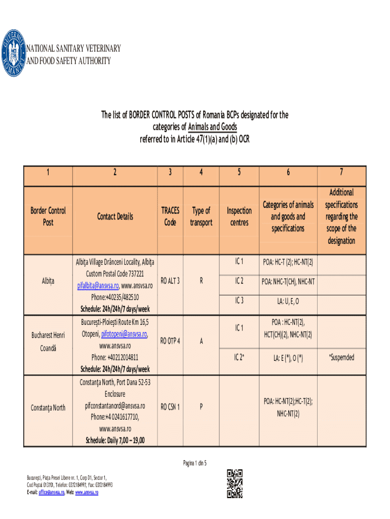 Get the free National Sanitary Veterinary and Food Safety Authority