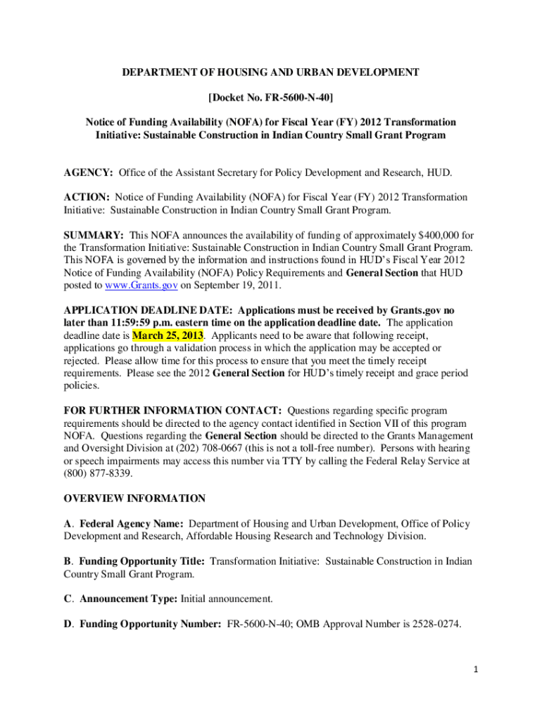 Get the free Notice of Funding Availability (nofa) for Fiscal Year (fy) 2012 Transformation Initi...