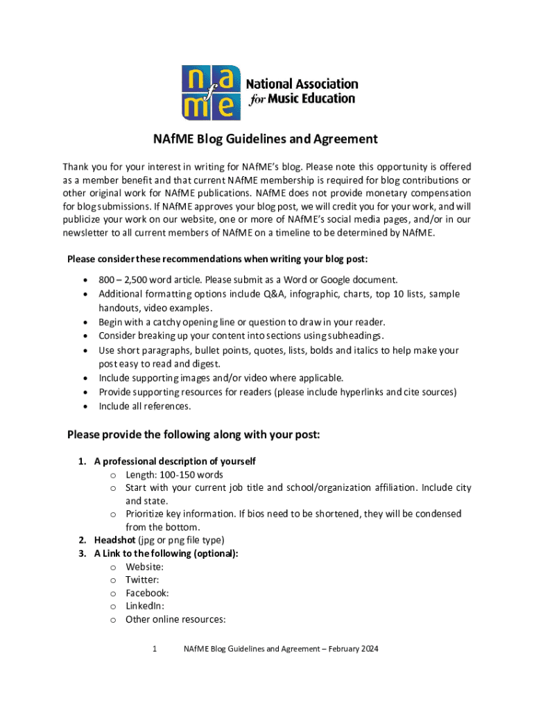 Get the free Nafme Blog Guidelines and Agreement