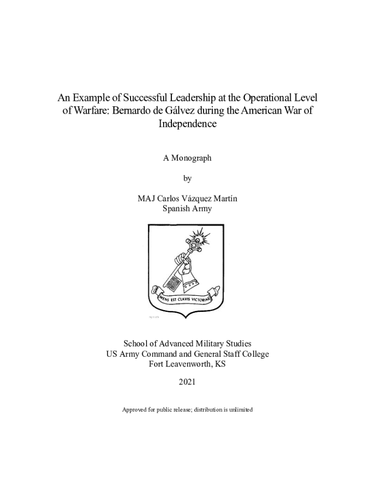 Get the free an Example of Successful Leadership at the Operational Level of Warfare: Bernardo De...