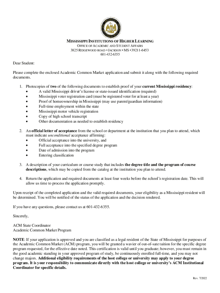 The application journey begins with contacting your home state's SREB representative, who will provide invaluable information regarding the academic common market application form. Following this initial communication, you will typically be required to submit an ACM Interest Form, a preliminary step that indicates your desire to proceed.