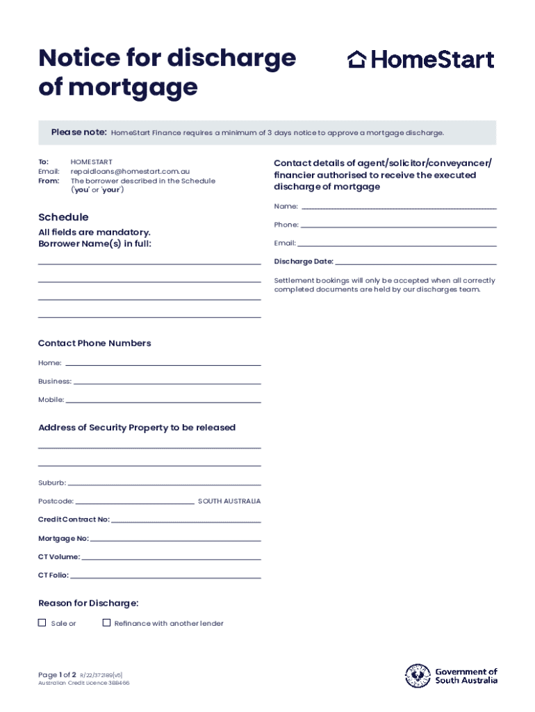 Get the free Notice for Discharge of Mortgage