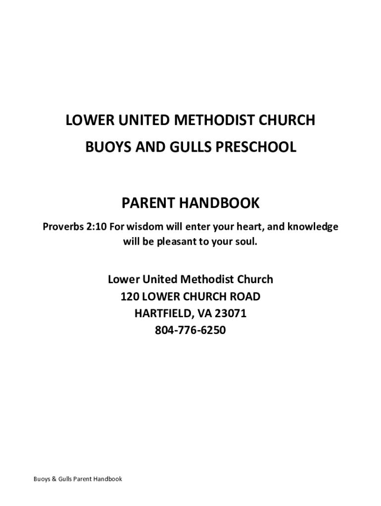 Get the free Buoys and Gulls Preschool Parent Handbook
