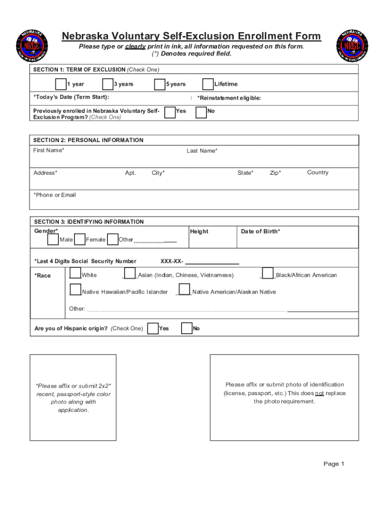 How to fill out nebraska voluntary self-exclusion enrollment?