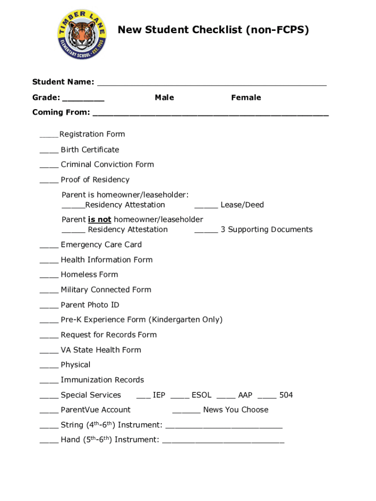 New student checklist non-FCPS form: A comprehensive guide