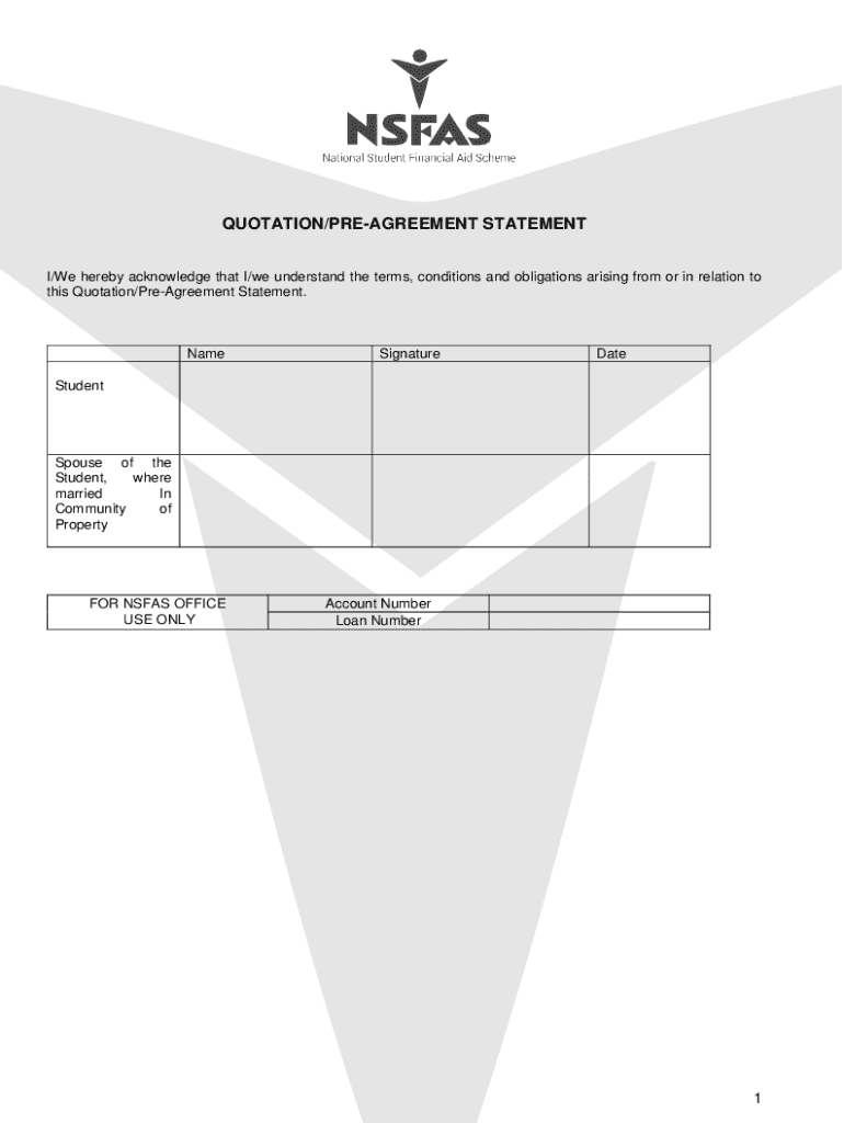Get the free Quotation/pre-agreement Statement
