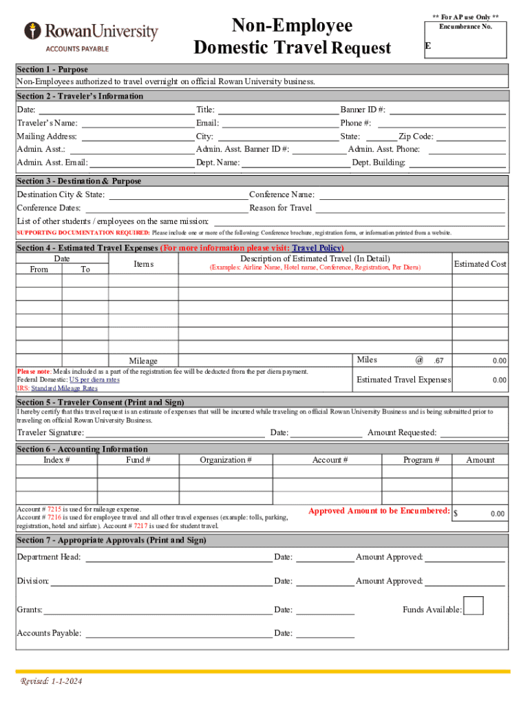 Get the free Non-employee Domestic Travel Request