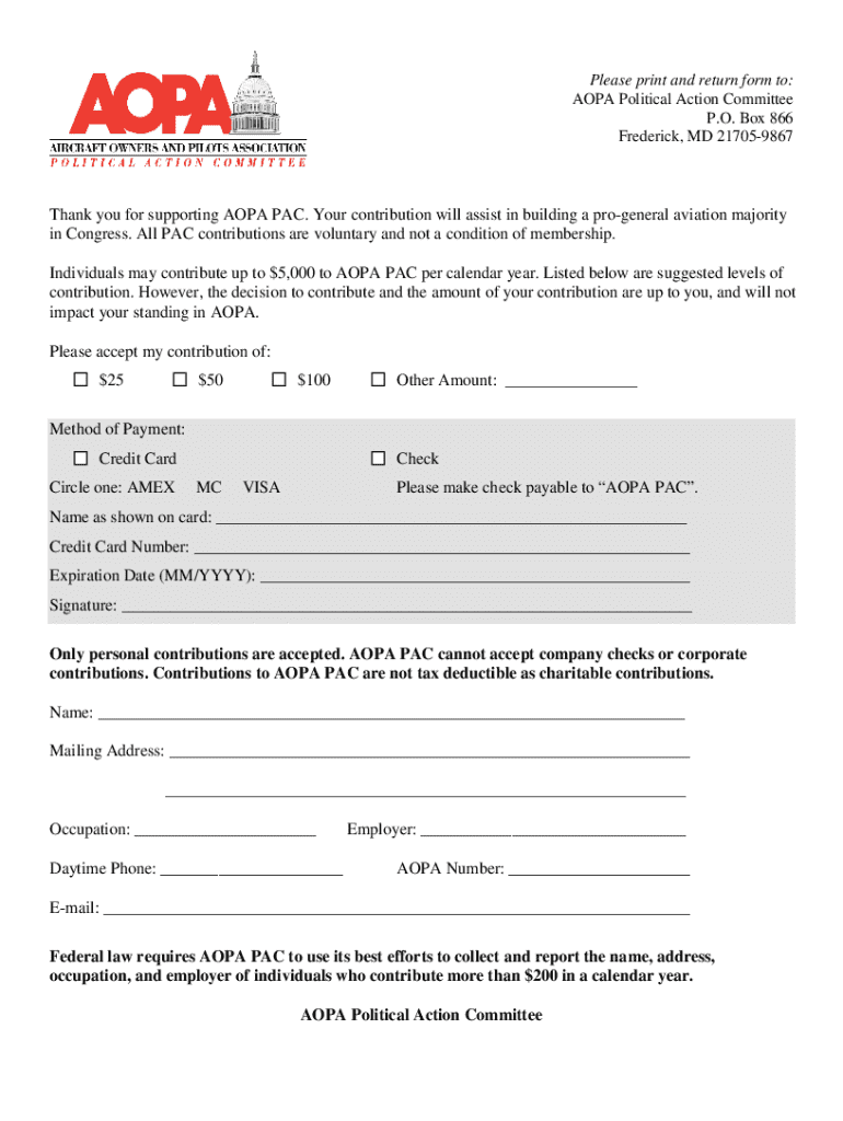 Get the free Aopa Pac Contribution Form