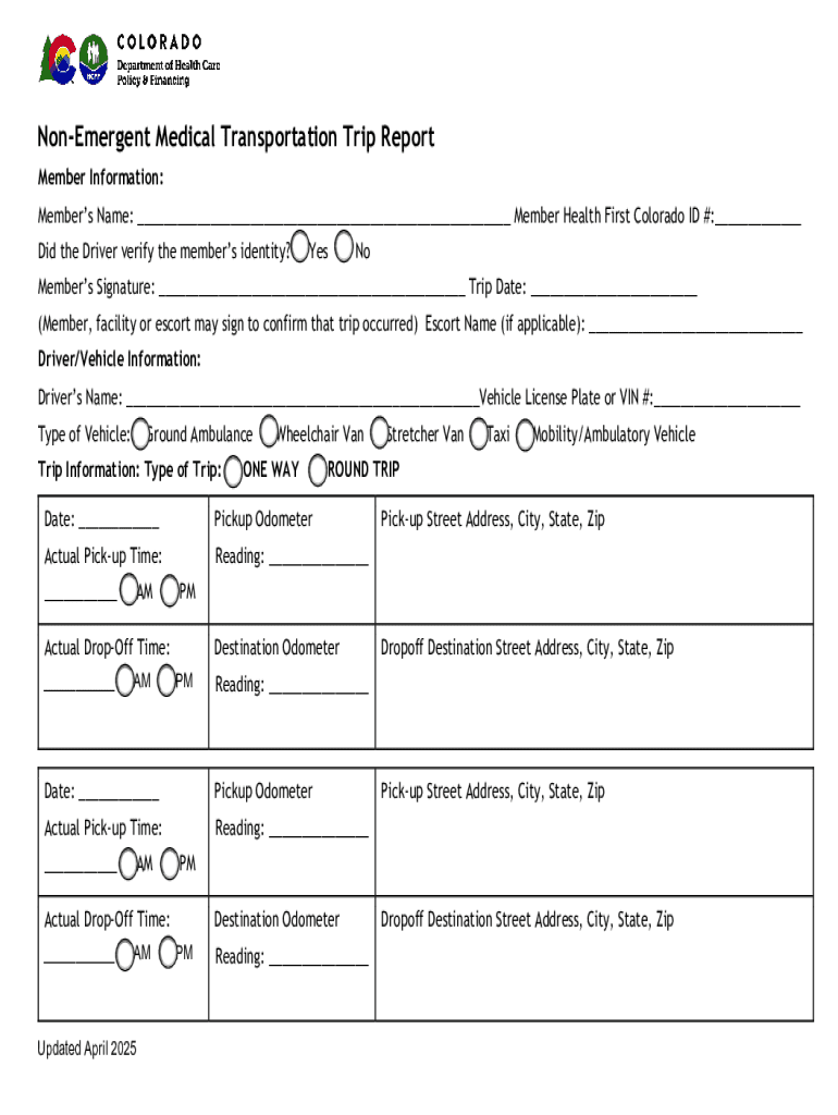 Get the free Non-emergent Medical Transportation Trip Report