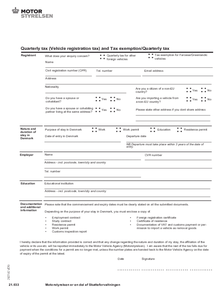 Get the free Tax Exemption / Quarterly tax The Motor Vehicle Agency ...