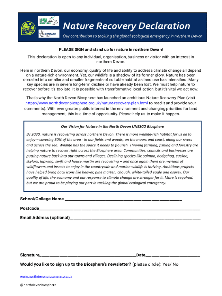 Get the free Nature Recovery Declaration