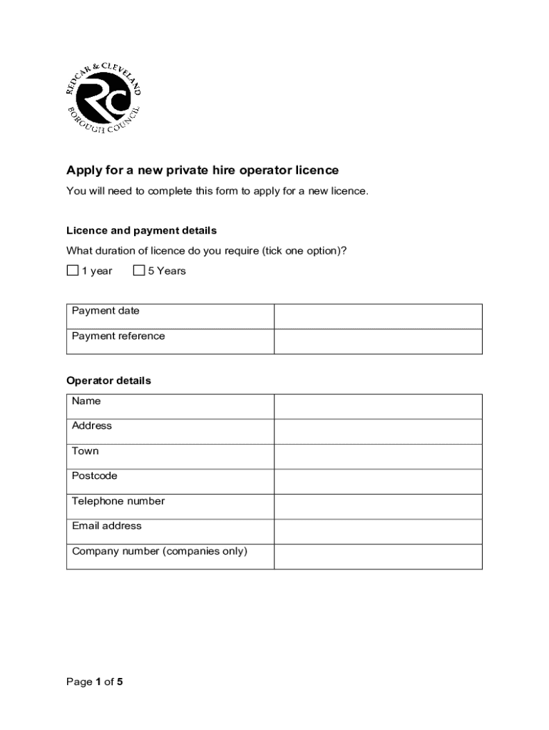 Get the free Apply for a New Private Hire Operator Licence