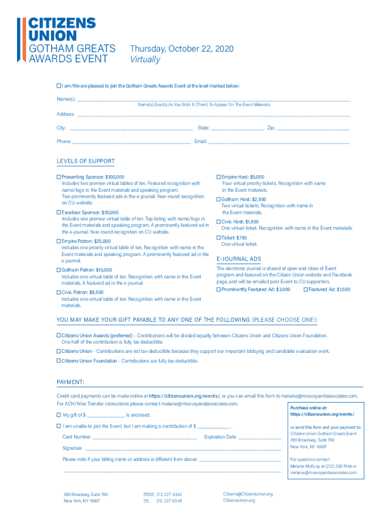 Get the free n I am/We are pleased to join the Gotham Greats Awards Event at the level marked below: