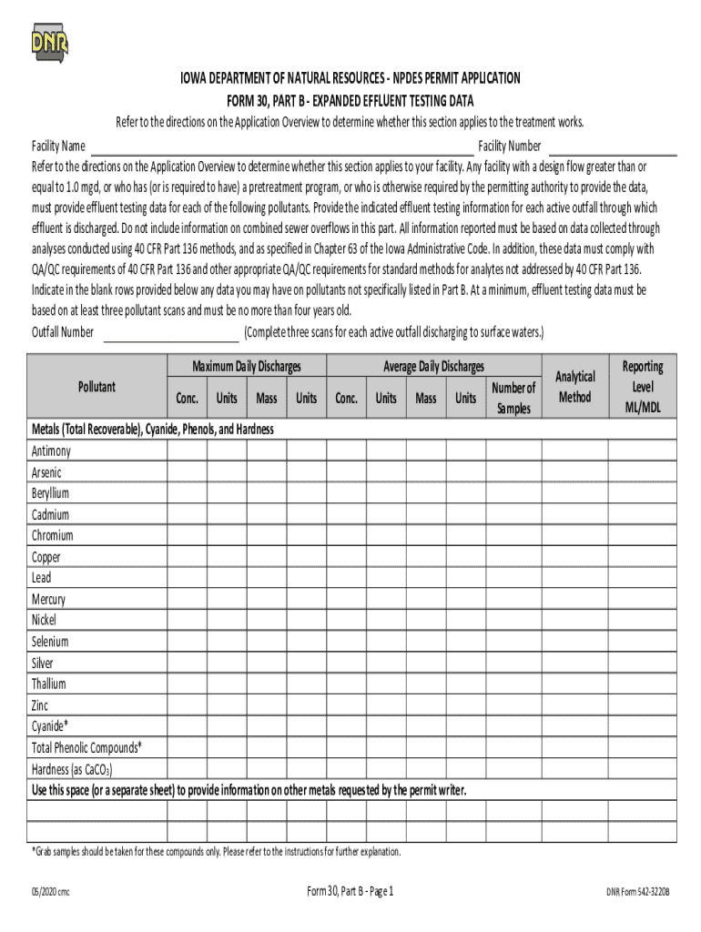 Get the free Npdes Permit Application Form 30, Part B - Expanded Effluent Testing Data